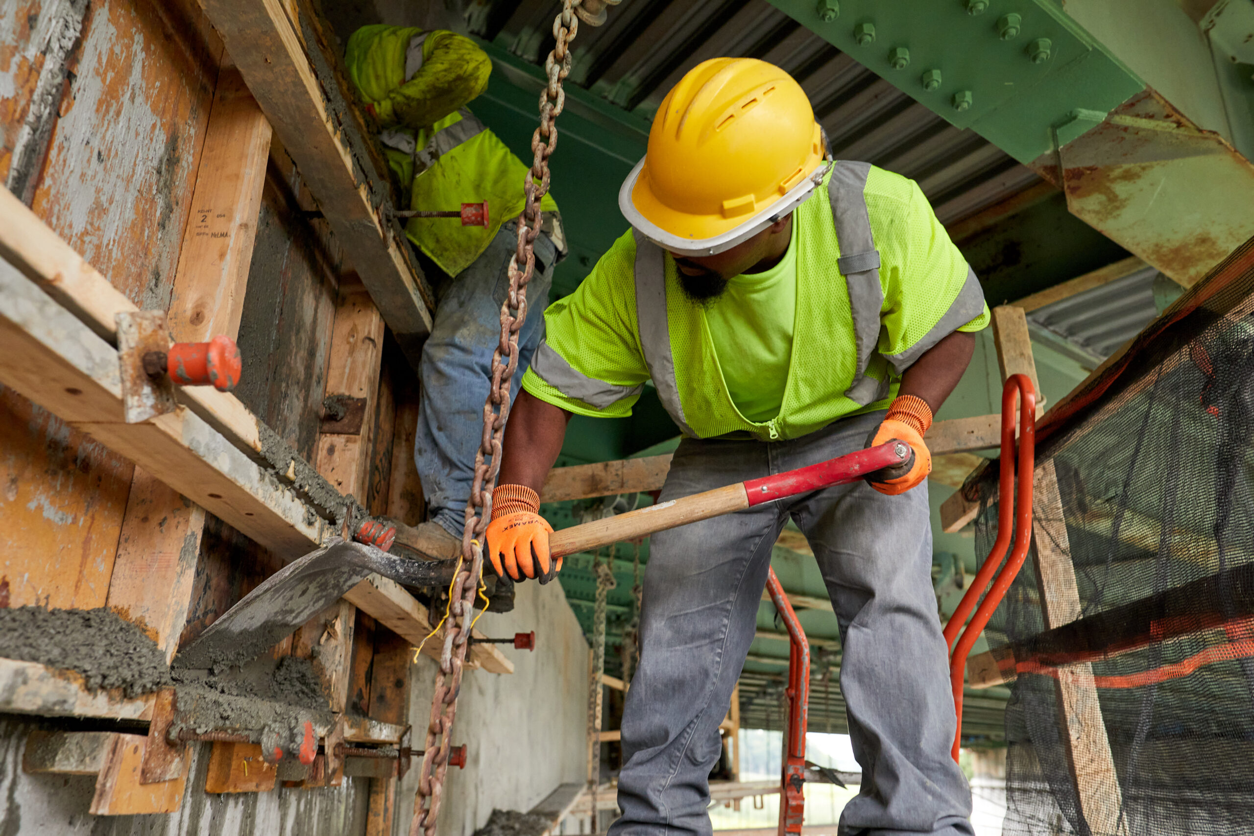 Maintaining proper flow, consolidation, and finish quality in this configuration requires experienced operators and continuous communication between crews above and below the structure.